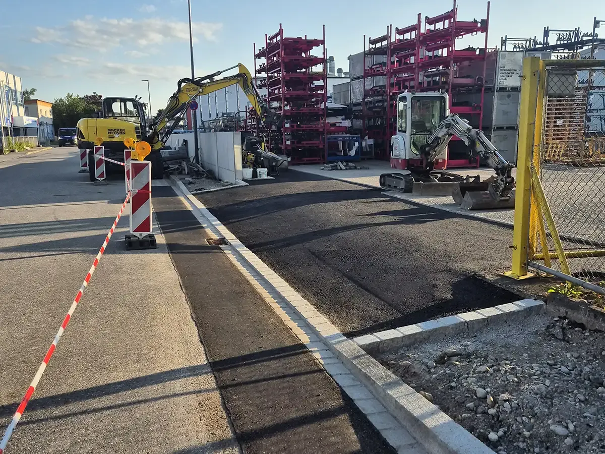 Das Ergebnis: Langlebige und belastbare VerkehrsflächenSie erhalten belastbare Asphaltflächen, die Risse, Schlaglöcher und andere Straßenschäden dauerhaft minimieren. Ob Fahrbahn, Gehwege oder Hallenflächen – die Oberfläche ist eben, griffig und optimal befahrbar. Durch fachgerechten Einbau, Reparatur von schadhaften Flächen, sowie sorgfältiger Instandhaltung sichern wir die Langlebigkeit der Flächen.