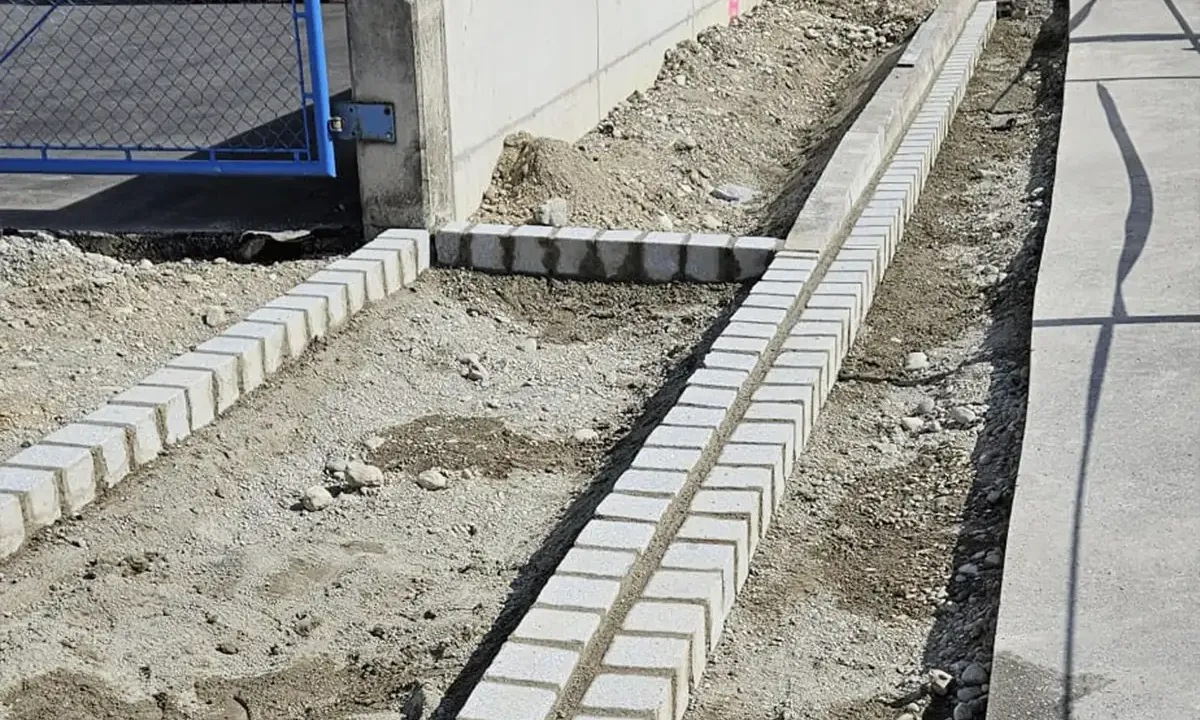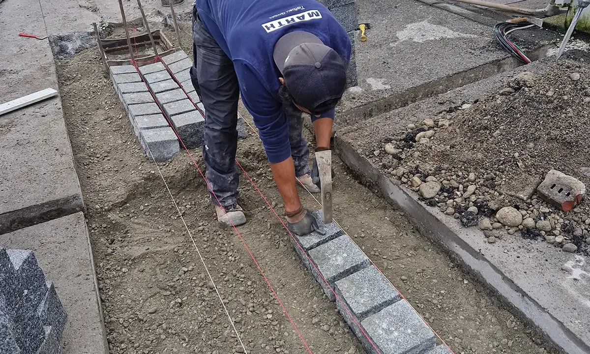 | Abbruch der schadhaften Randsteine und Einfassungen | |